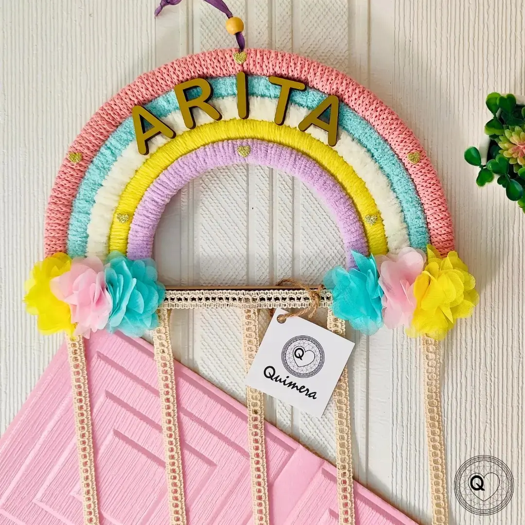 - Diseño encantador: Este arcoiris no solo es decorativo, sino también práctico, ya que cuenta con cintas donde puedes colgar fácilmente ganchos o pinzas de pelo.