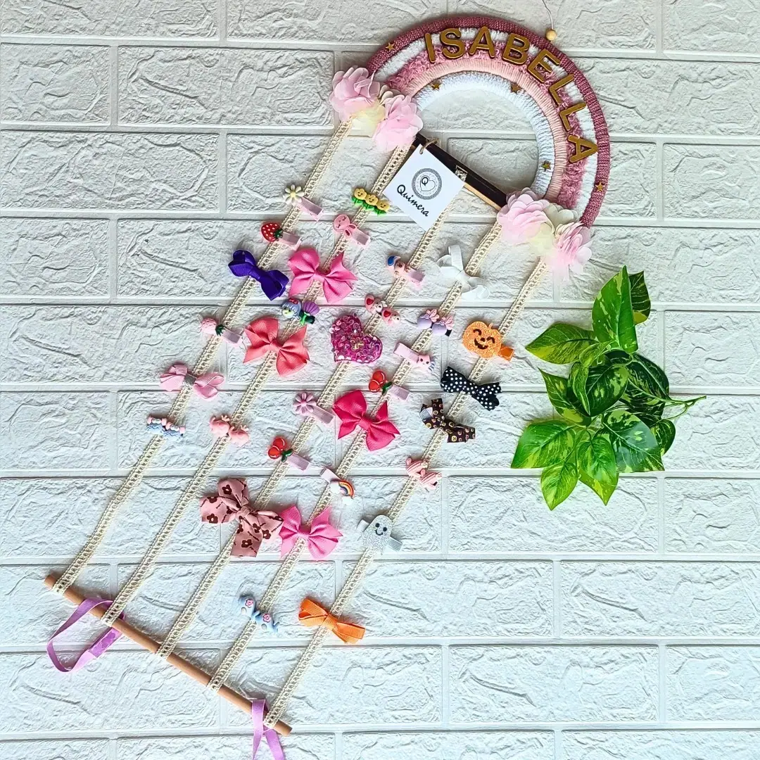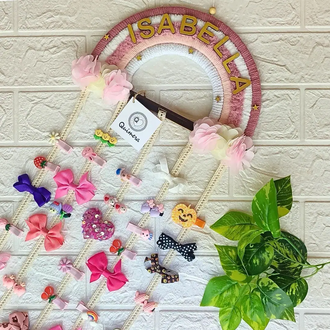 • Diseño encantador: Este arcoiris no solo es decorativo, sino también práctico, ya que cuenta con cintas donde puedes colgar fácilmente ganchos o pinzas de pelo.